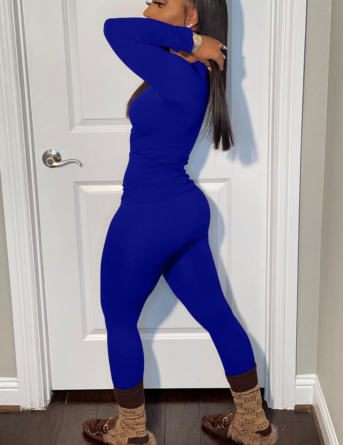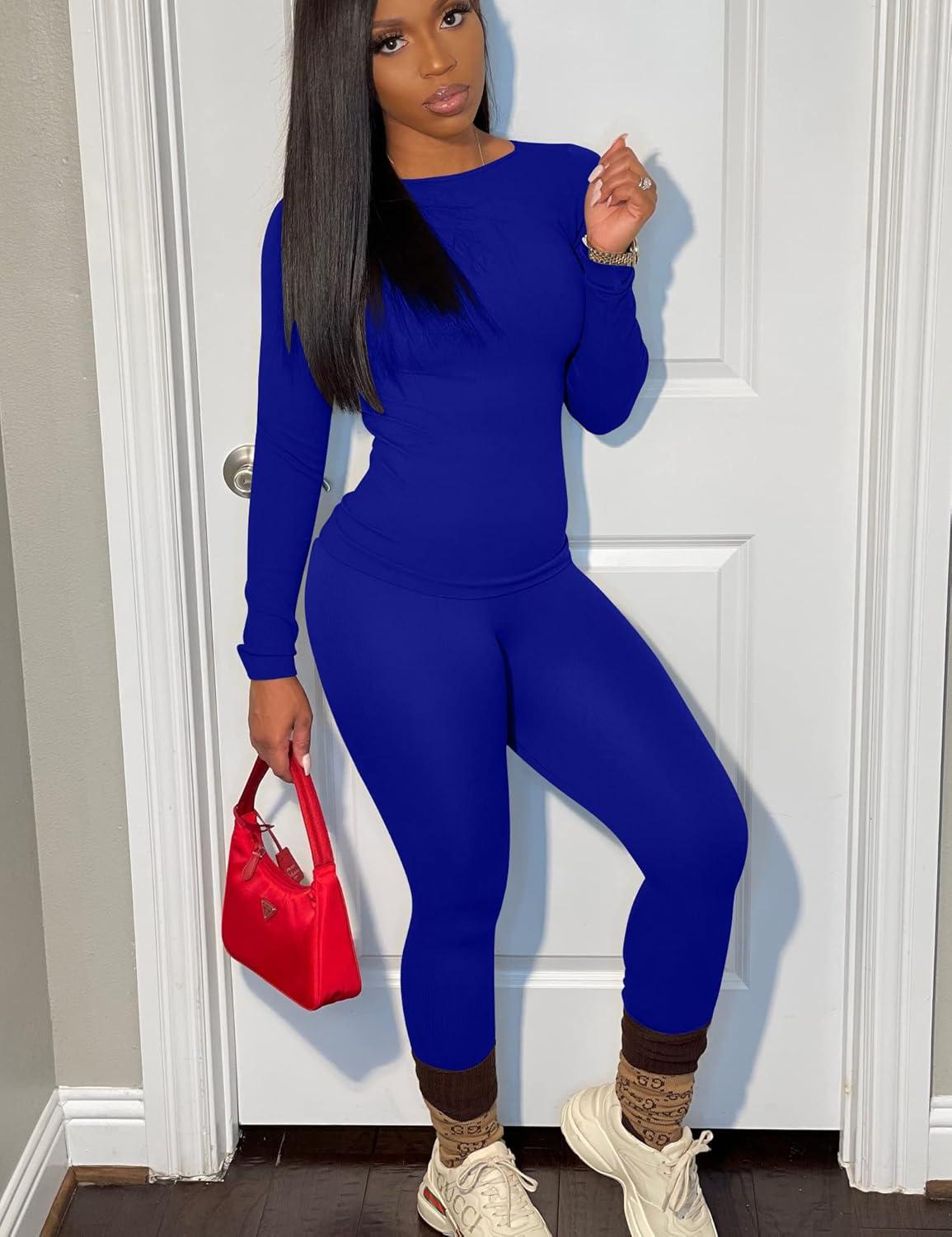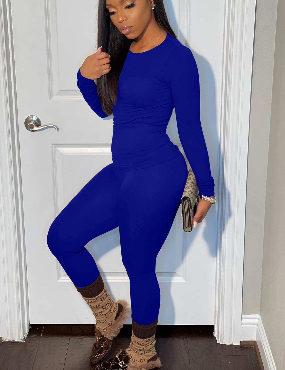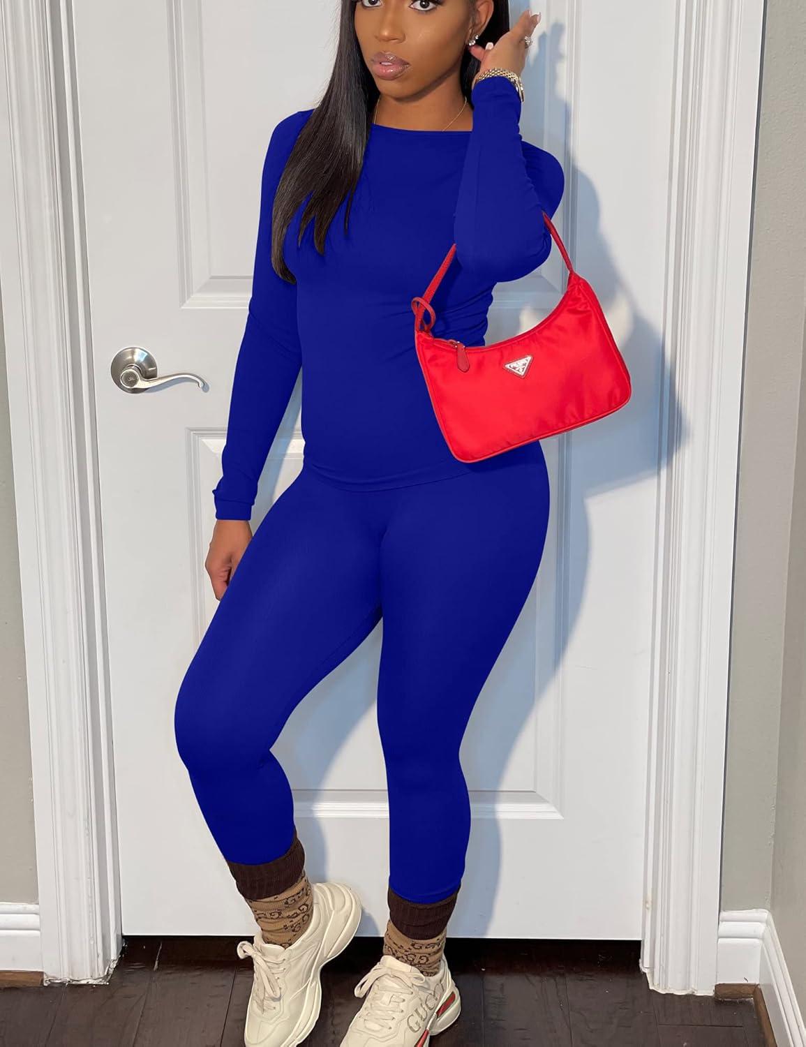 BORIFLORS Women’s 2 Piece Track Suits Outfits Workout Long Sleeve Top Jogger Legging Pants Sets(Royal Blue)