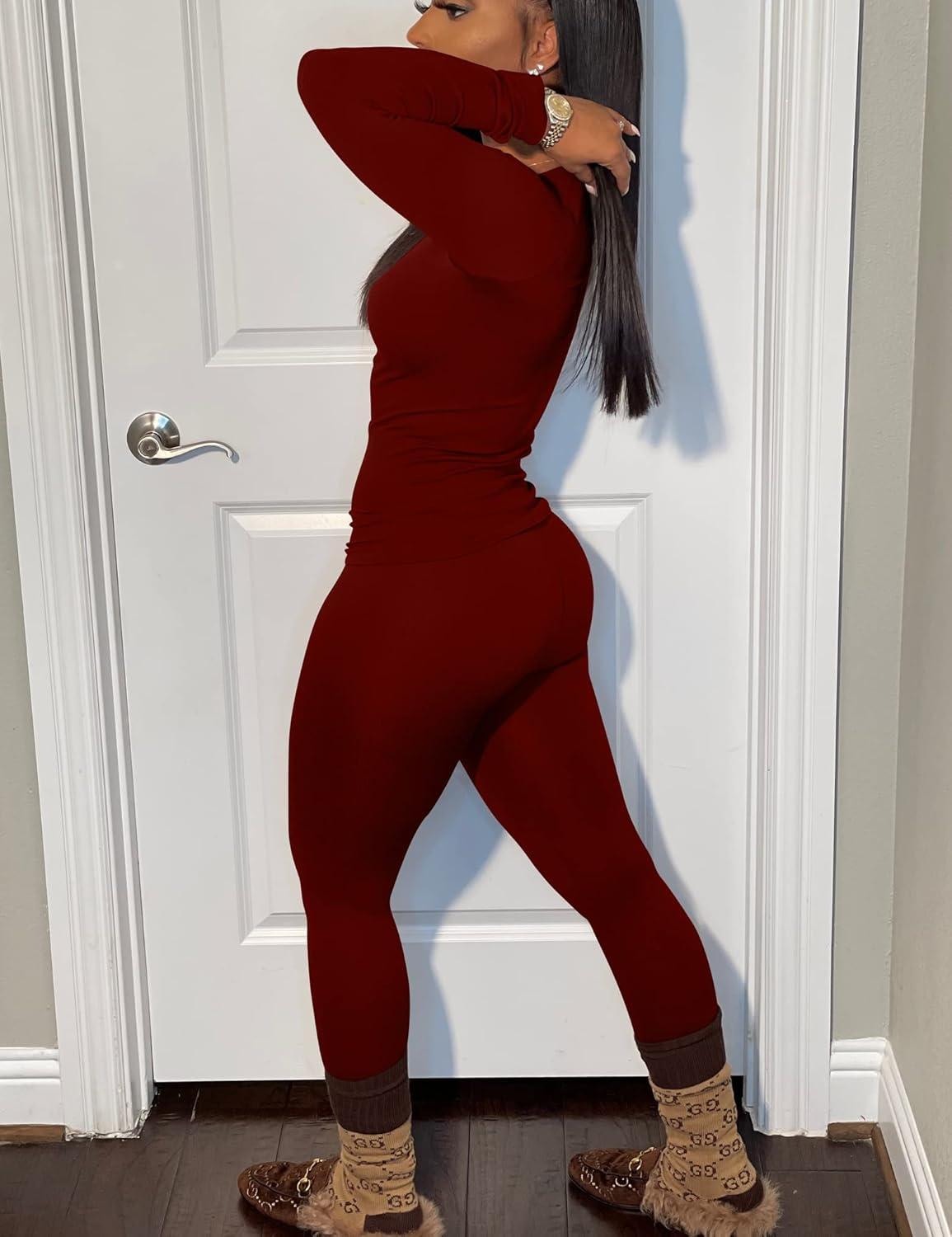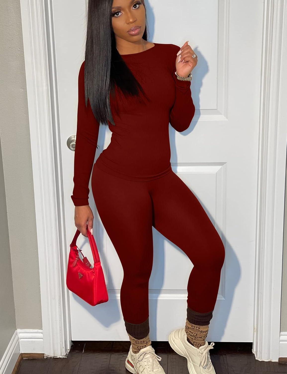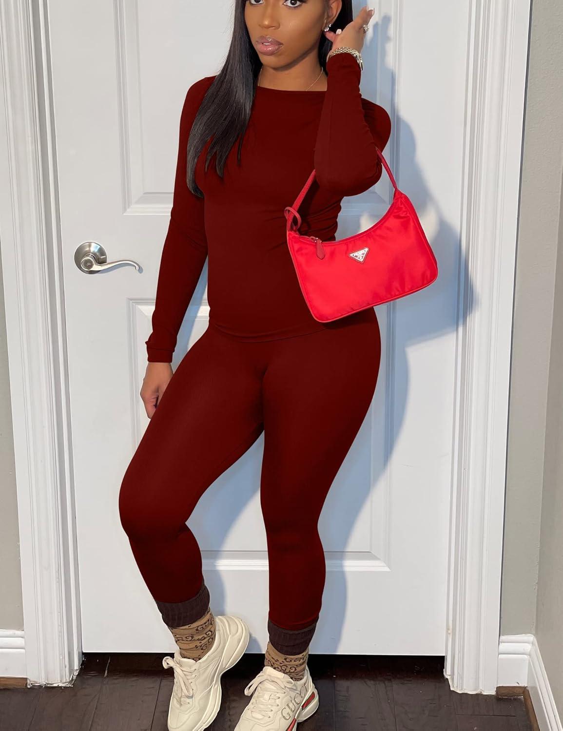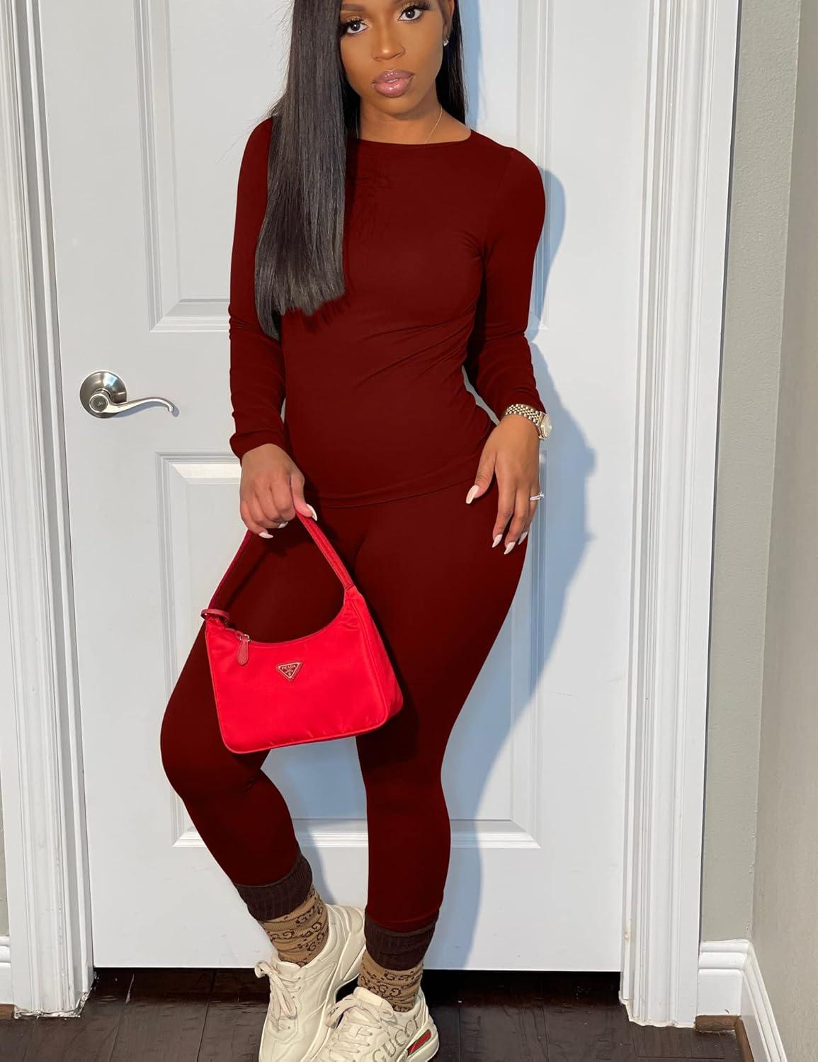 BORIFLORS Women’s 2 Piece Track Suits Outfits Workout Long Sleeve Top Jogger Legging Pants Sets(Wine Red)