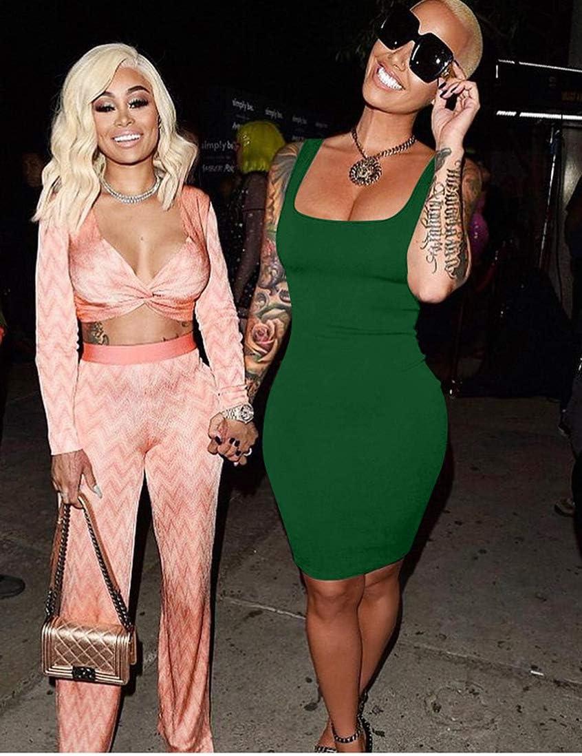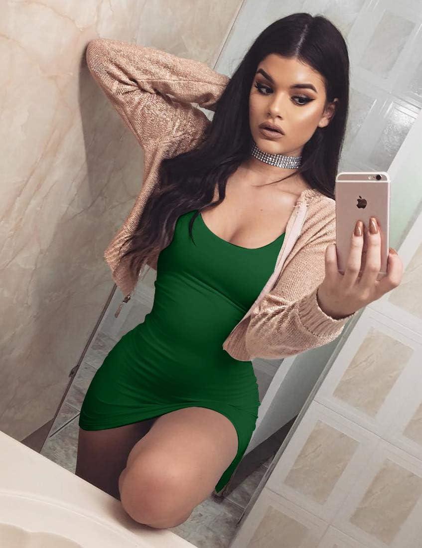 BORIFLORS Women’s Casual Basic Tank Top Sexy Sleeveless Bodycon Mini Club Dress(Dark Green)