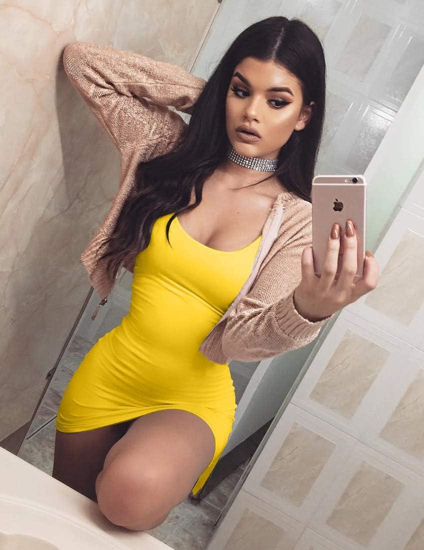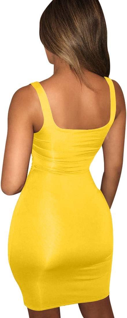BORIFLORS Women’s Casual Basic Tank Top Sexy Sleeveless Bodycon Mini Club Dress(Yellow)