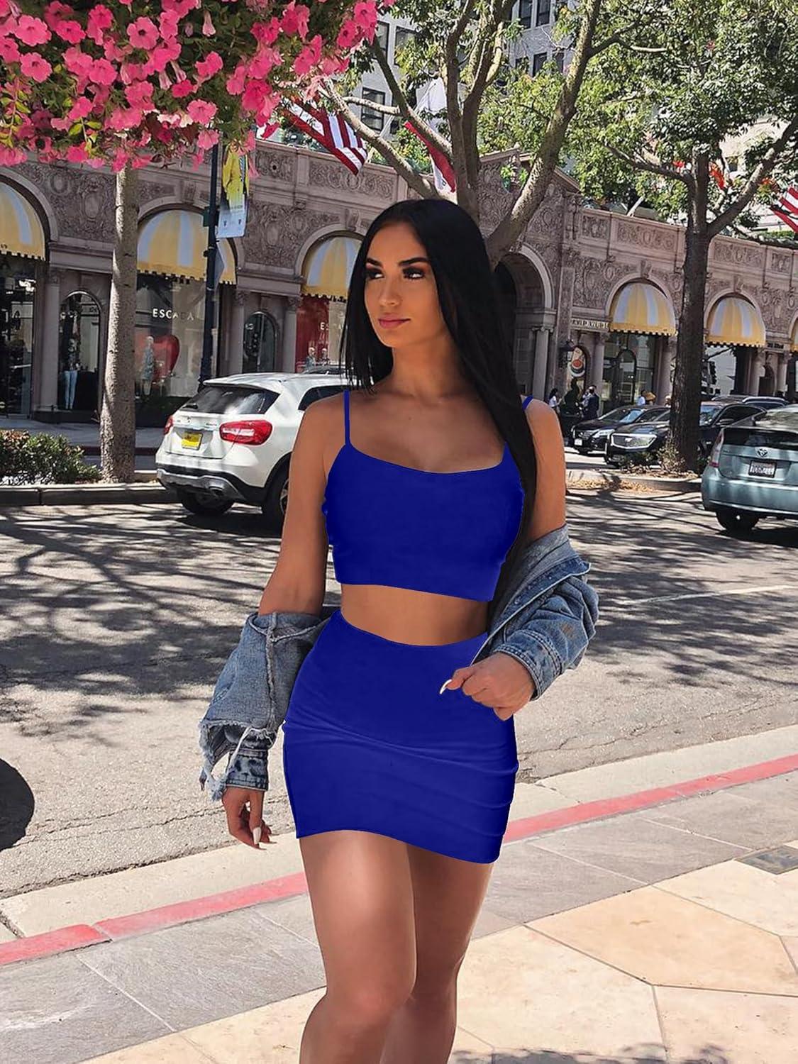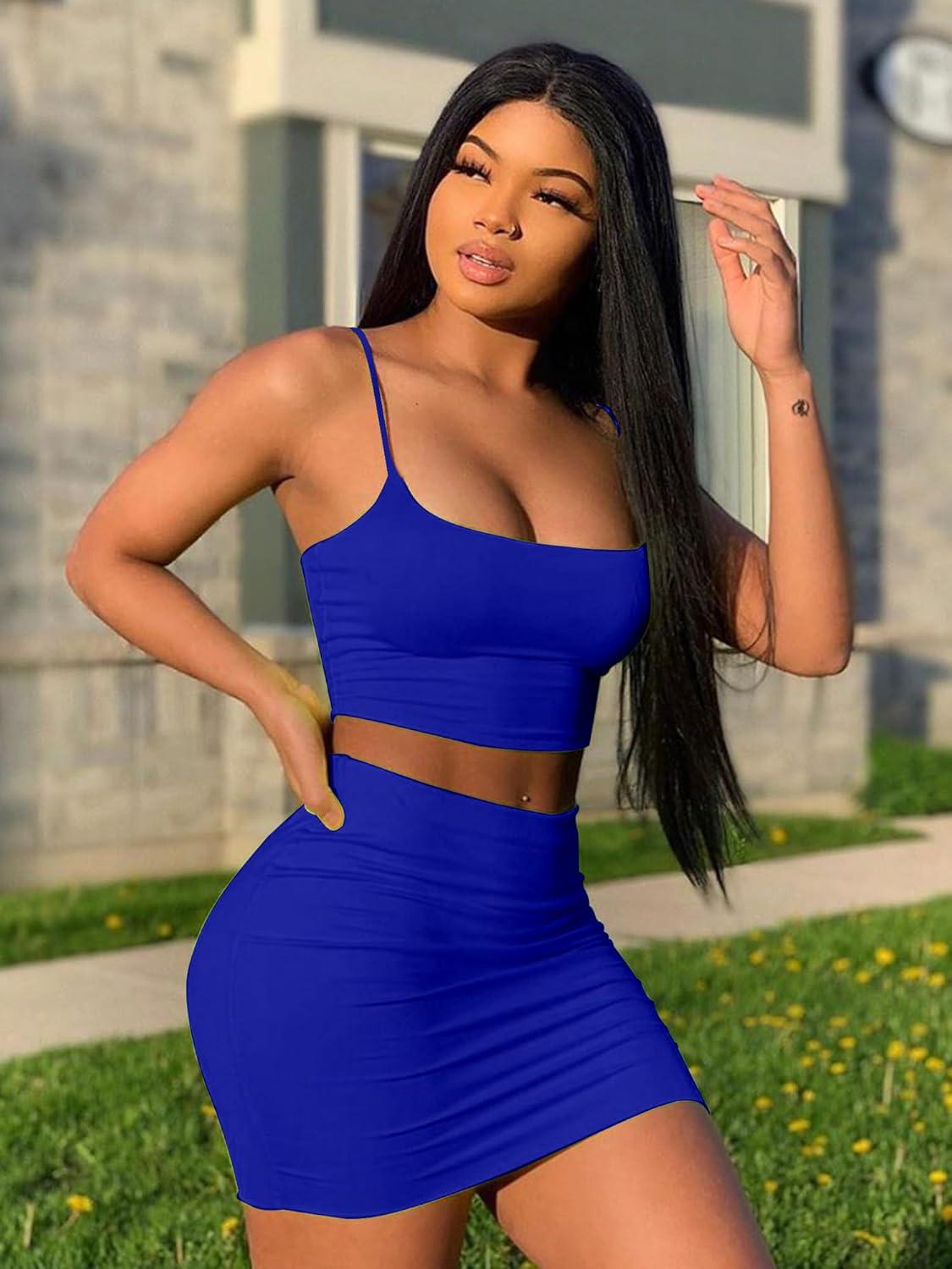 BORIFLORS Women’s Sexy 2 Piece Bodycon Mini Party Dresses Halloween Costume Strap Crop Top Short Skirt Set(Royal Blue)