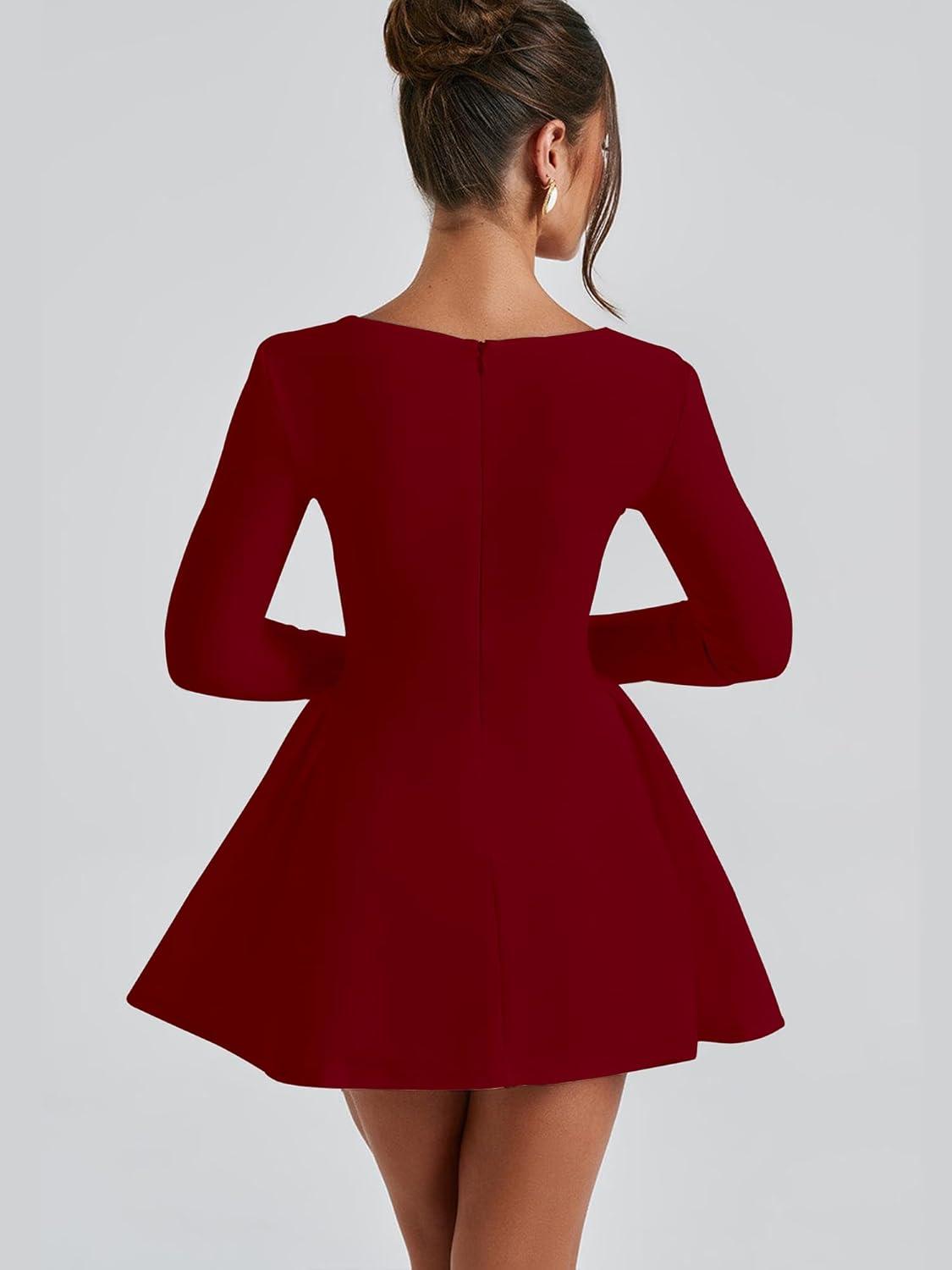 BORIFLORS Women’s Sexy Corset Mini Party Dresses Elegant Ruched Long Sleeve Cocktail Short Dress(Wine Red)