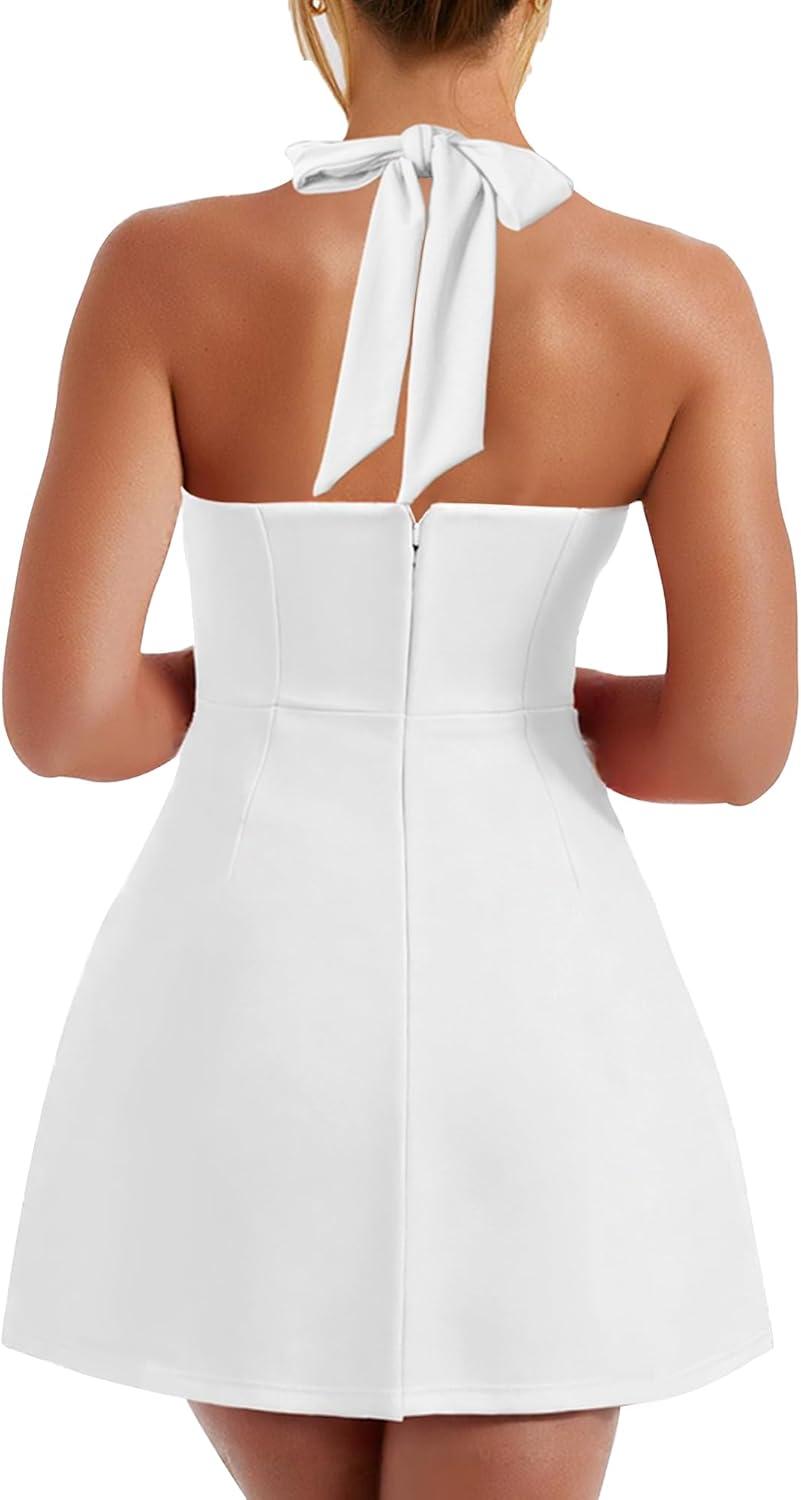 BORIFLORS Women’s Sexy Halter Bodycon Mini Dress Corset Backless A-line Party Short Dresses(White)